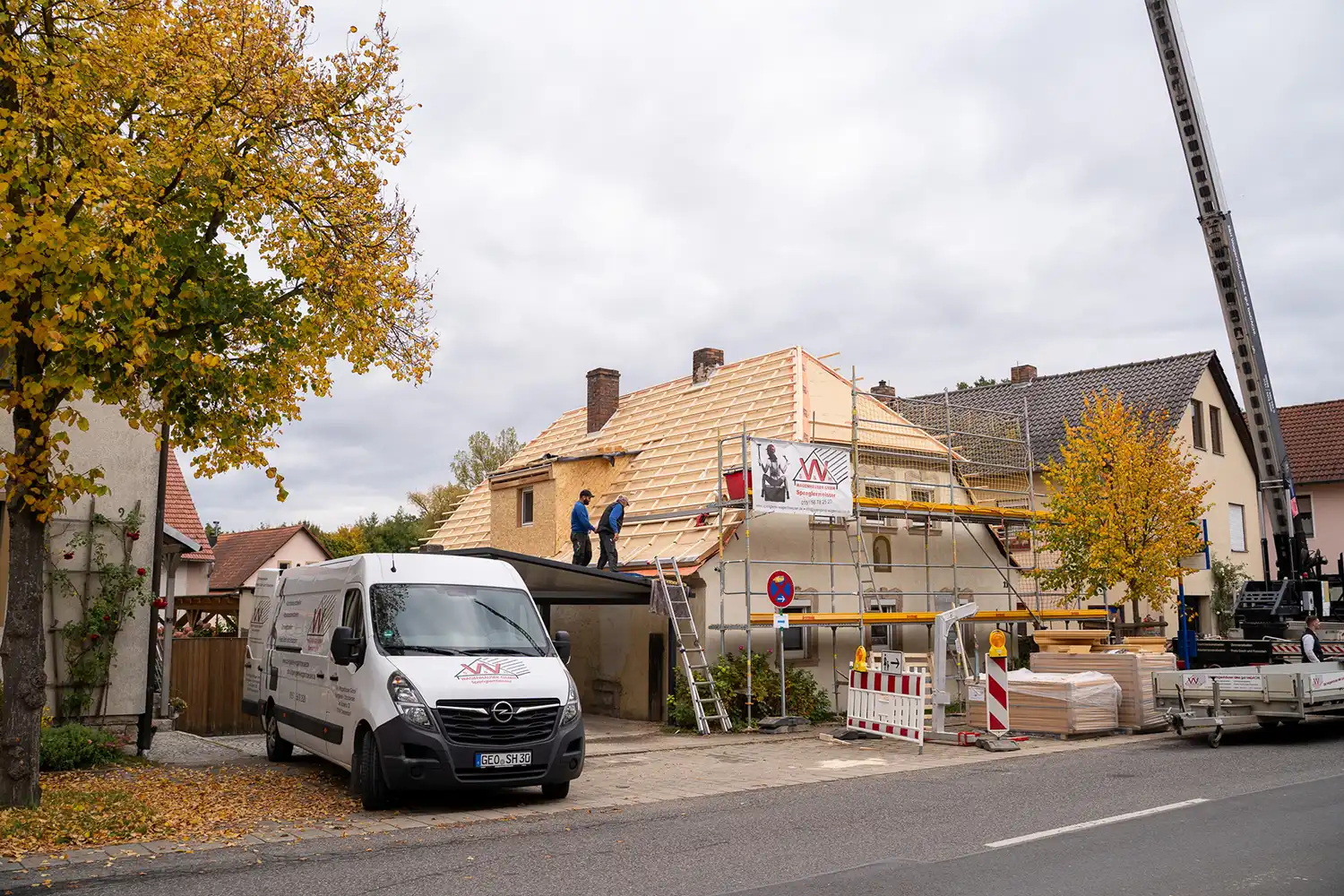 Dein Zuhause in Meisterhand: Präzise Planung, koordinierte Abläufe und absolute Sauberkeit. Wir bauen Dächer für Generationen.